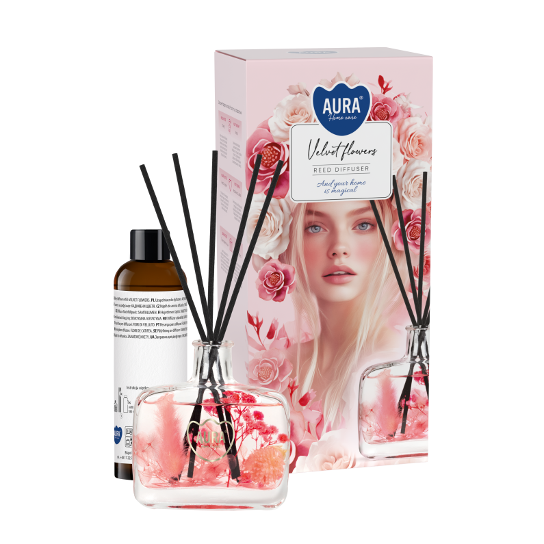 The exceptional Velvet Flowers fragrance diffuser combines fruity sweetness with warm, sensual notes. Its elegant design enchants with a subtle aroma and a decorative character that perfectly complements any interior arrangement.